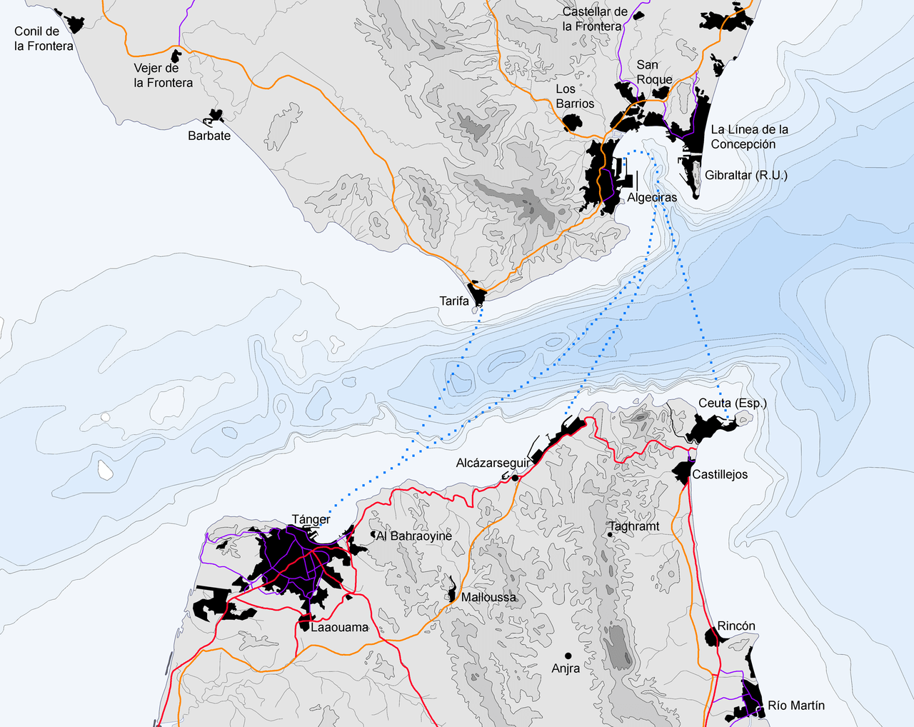 歴史的にもイベリア半島は、実は長い間イスラム教世界の一部でした。ジブラルタル海峡を挟んで北アフリカと深く繋がっていました。意外かもしれませんが、イベリア半島はどちらかと言えば北アフリカの文化圏に属しています。ヒトとモノは山を越えるより海を渡るほうが楽なんです。ヨーロッパとの往来はピレネー山脈の巨大な壁が分断してくれていて、地中海の海運も海洋都市国家たちはイスラム教世界の船には手出しできません。ですから船で地中海をイベリア半島に渡り、カナリア海流に乗って北アフリカに戻れば行き来は簡単にできました。つまり、イベリア半島は北アフリカの一部として機能したほうが成立しやすい土地でした。後にナポレオンも「ピレネーの向こうはアフリカ」と述べています。オリエントに続く広大なイスラム教世界と繋がっていたことで成立していた土地だったわけです。